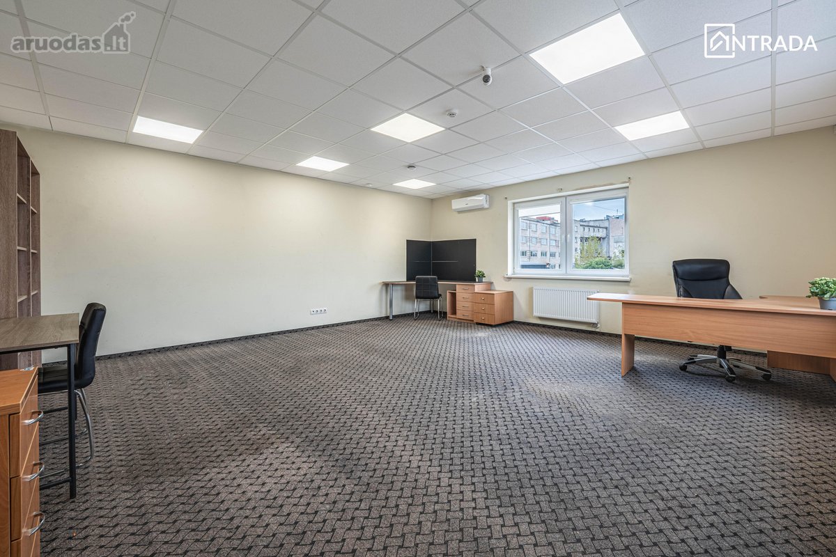 Nuomojamos 35 kv. m administracinės patalpos antrame aukšte, tinkamos biurui ar kitai administracinei veiklai.
