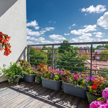 Balkonas-terasa – jauki, orientuota į ramų vidinį kiemą su vaizdu į „Švyturio Loftus“ ir „Pepper Grey“;