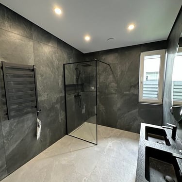 Įtempiamos lubos ir LED apšvietimas – modernus dizainas, jauki atmosfera.