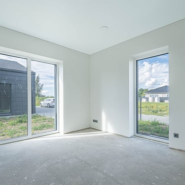 Vitrininiai langai svetainėje ir pagrindiniame miegamajame