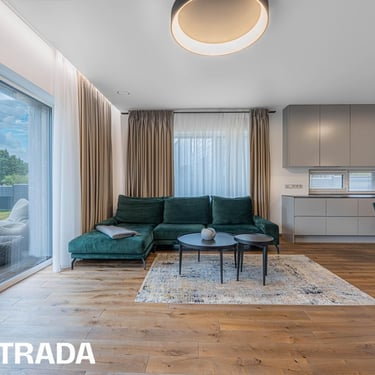 • Erdvi 45 m² svetainės ir virtuvės zona