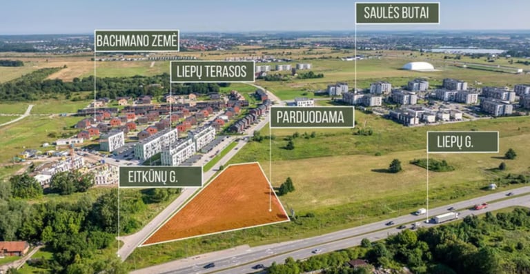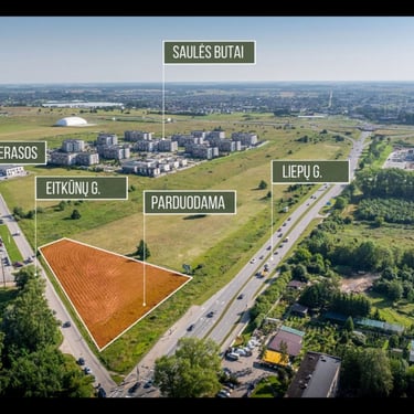 Parduodamas sklypas vienoje iš aktyviausiai besivystančių Klaipėdos vietų – Liepų g. ir Eitkūnų g. sankirtoje, vos 3 km (4 min. automobiliu) nuo miesto centro.
