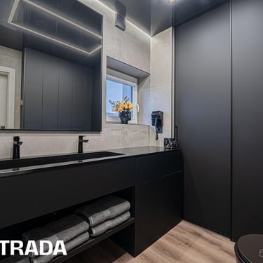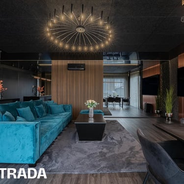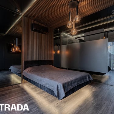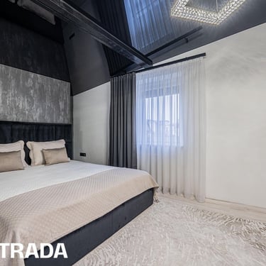 Sumontuotos įvairios LED apšvietimo zonos su spalvų pasirinkimu, elektriškai valdomos dieninės ir naktinės užuolaidos.